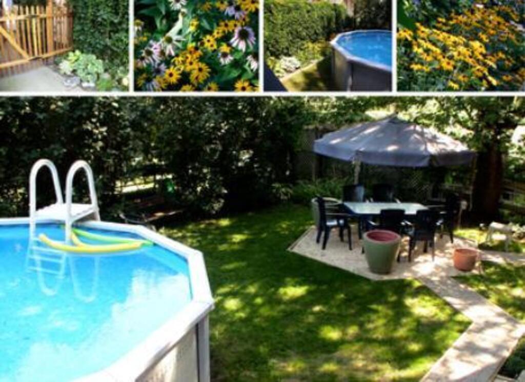 Notre maison à Montréal offre 3 chambres à coucher, deux pourvues de lits doubles, la troisième avec lit simple, deux salles de bain complètes, cuisine, salle à manger, salon et bureau. Vous aurez un accès privé à la cour arrière dotée d'une piscine et d'une terrasse.