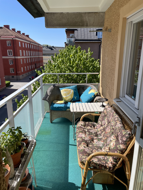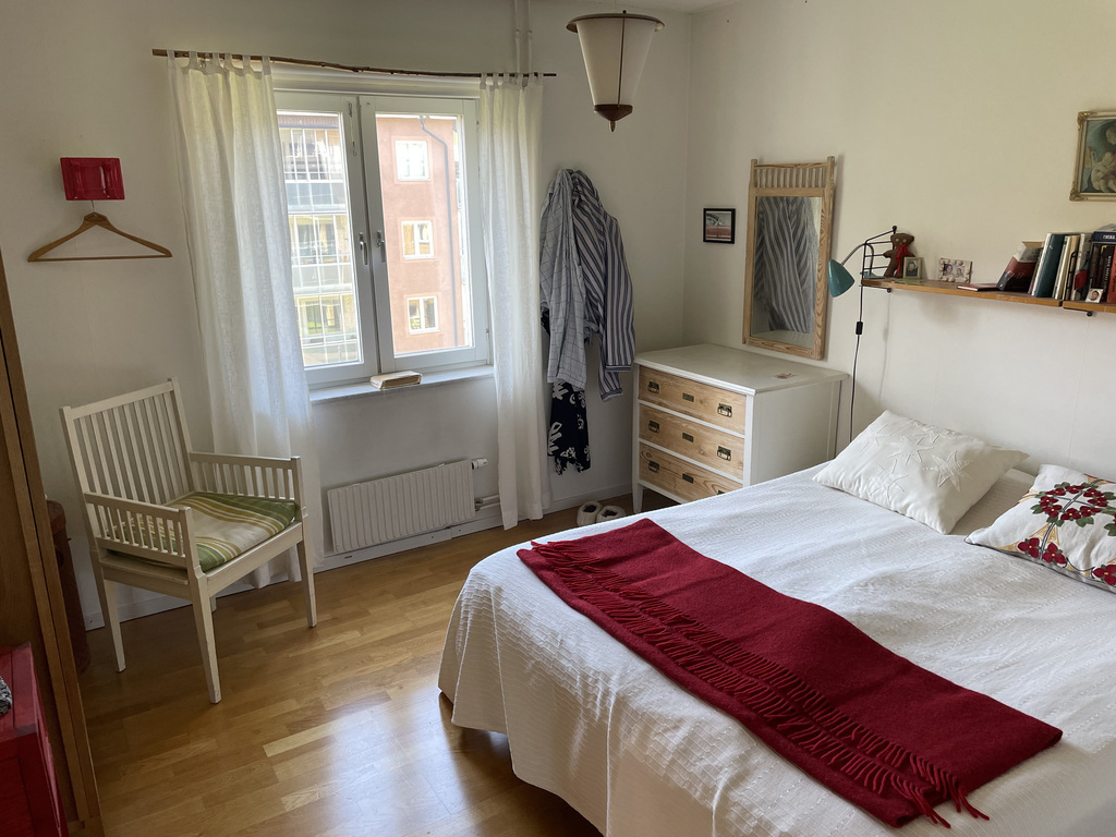 The flat in Stockholm is situated in the city. It has a big shared garden and a balcony. We are close to the waterfront with many nice restaurants and walks. The beach is nearby.
