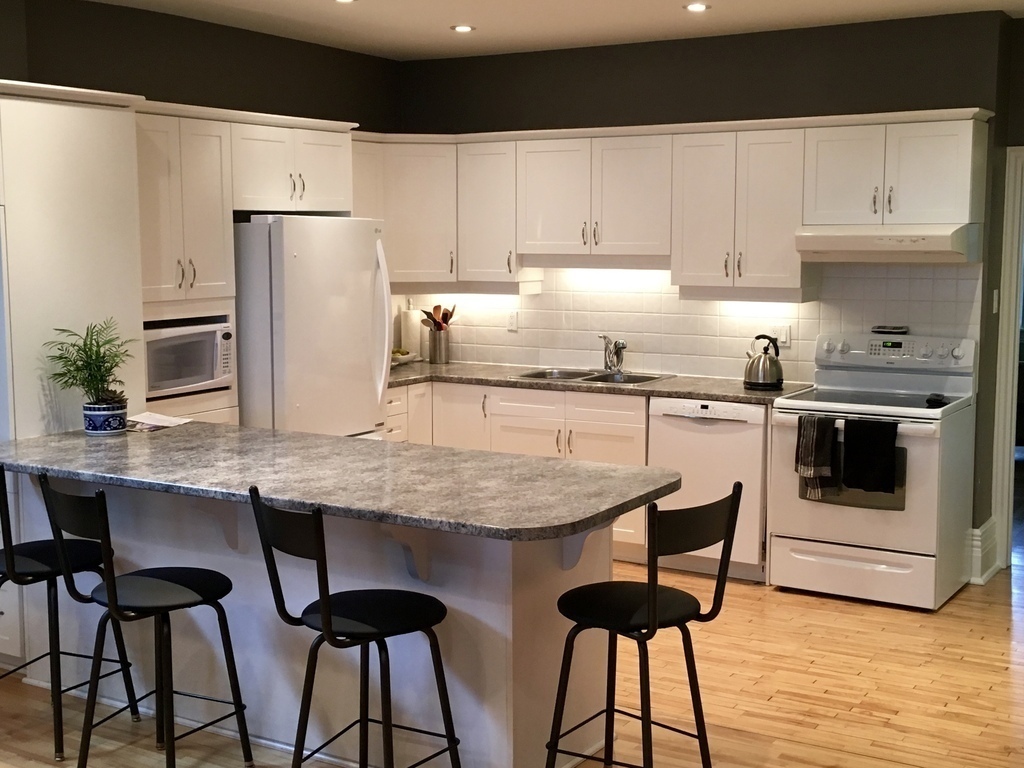 The house is bright and comfortable. The ground-floor has an open concept living-dining space and a wonderful kitchen and family room which looks out over the deck. We have a great yard and deck with gas barbeque, from which to enjoy the warm Ottawa summer. There is an office, two washrooms and three bedrooms on the second floor. The master bedroom has an on suite washroom with a large soaker tub and shower! The third floor is a loft-family room with additional sleeping capacity.