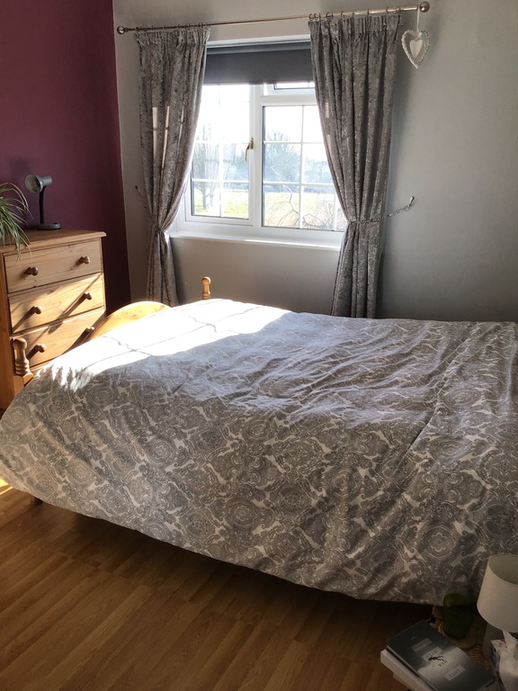 We have a semi-detached house in a quiet area in the country just outside the City of Bath set amongst green fields with lovely views.