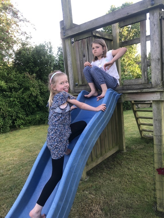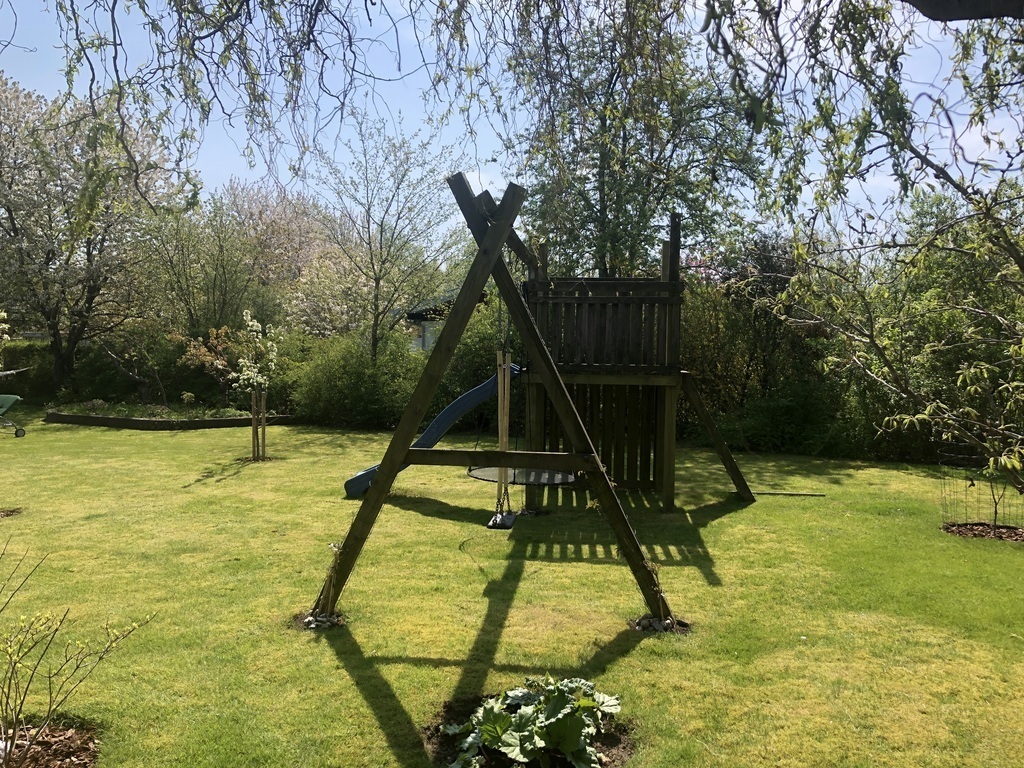 Outside we have a big garden with swings and slide and sand box for children. We have 4 grandchildren ( girls) so we have a lot of toy for girls.