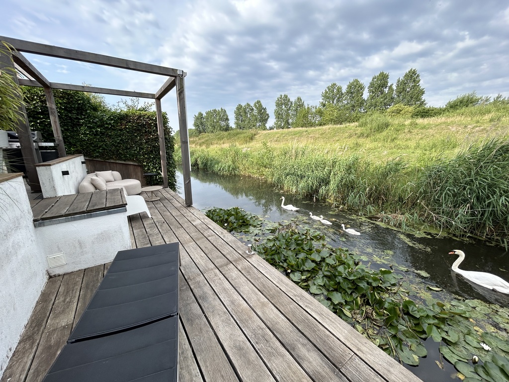 The house, built under architecture in 2010 has 4 rooms, a unique living with high ceilings, a fireplace and tv corner. In our kitchen you will find all modern kitchen equipment (steamer, cooker, grill). The brand new garden with deck near the water overlooking the sheep on the historical location (the defence line of Amsterdam called 'Geniedijk' gives you an extra holiday feeling. The garden is also a great place to bbq. We have three bedrooms and a study; all brand new. Next to our house there is a parc. A few hundred meters from our house, you have a golf course (called ‘Haarlemmermeersche Golfclub’).