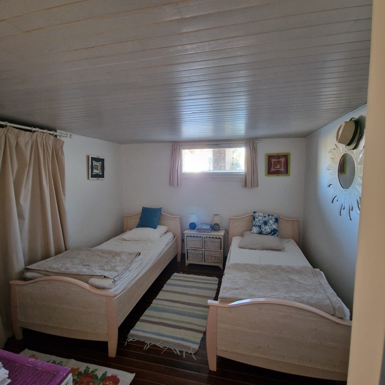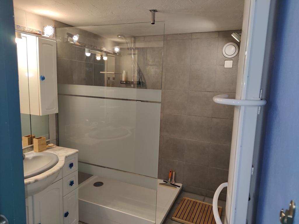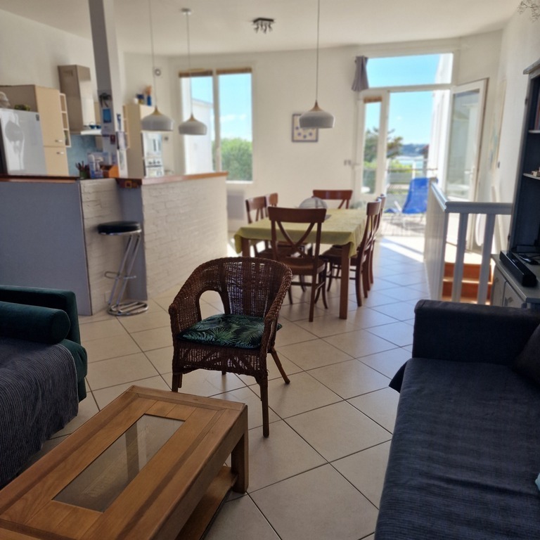 The apartment of 90 m² is located on the ground floor in a building 50 meters from the sea (beach of St Cieux).