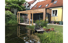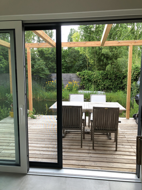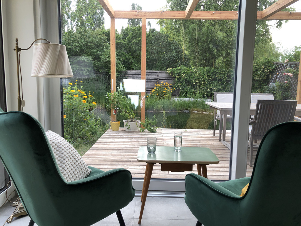 In our enclosed garden there is a big private swimming pond (natural water, plants, shy frogs, no fish, no fence, 150 cm deep, you need to be a swimmer), a wooden deck area and a table for 8 including a big Weber coal grill. In summer the garden is full of flowers and provides raspberries, tomatoes and herbs for you everyday. Our pond is nice and cool even on hot days. If you prefer chlorine water there is a public swimming pool in town with slides and facilties for beach volleyball and tennis.