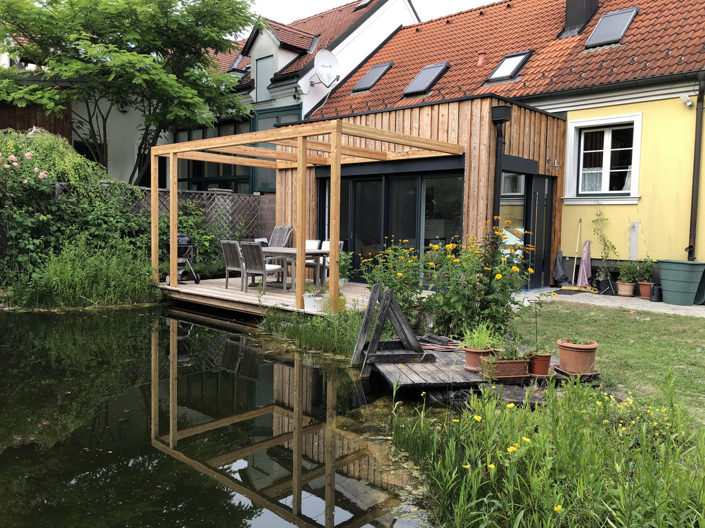 We are living in Mistelbach, a medium town 45 minutes north of Vienna. Our house was built in 1955 and has been fully renewed and provides a colorful cozy mix of modern and vintage pieces. It has 2 levels plus a cellar (with washing machine and laundry dryer). On the ground floor: office with private infrared sauna, a bathroom with shower and toilet and our 40 sqm open living-dining-kitchen-room with Sat TV, books, DVDs, PS3, DVDplayer, Netflix, free Wifi and a wooden fireplace. Our big kitchen is fully equipped and used to cooking together. Upstairs there are 3 bedrooms (1 double bed, 2 french beds and a spare mattress to be laid on the floor if needed), a second bathroom with shower and tub, and another toilet. Next to our entrance there is a new sun-room that opens to the wooden deck that partly covers the swimming pond. We love to sit there, have breakfast or read any time of the year, looking into the garden.