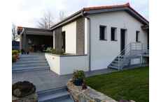 Notre maison neuve comprend une grande pièce de vie de 60 m2 avec une cuisine aménagée, 2 chambres avec 1 salle de bains dans la partie nuit et 1 chambre/bureau avec un canapé convertible neuf avec une salle d'eau attenante. La pièce de vie donne sur une grande terrasse (40 m2)disposant d'une pergola bioclimatique qui peut s'ouvrir ou se fermer en fonction de l'ensoleillement. Notre jardin donne sur un champ ce qui permet de profiter d'un joli paysage. Il n'y a aucun vis à vis sur notre maison, les murs à l'entrée permettre de conserver notre intimité.