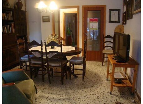 Apartamento de tres habitaciones (matrimonio, doble con dos camas e individual con litera y cama de arrastre), dos baños y cocina independiente. Terraza con vista lateral al mar. Ascensor y plaza de párquing cubierta. Muy tranquilo. Sol de tarde.