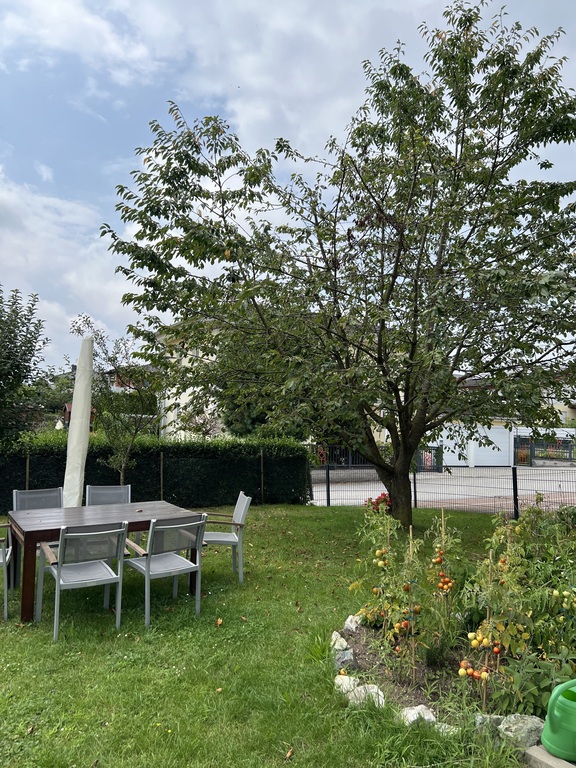 Im Sommer gibt es ein ein großes Trampolin im Garten.Wir haben nicht den gepflegtesten Garten, dafür ist er " unverwüstlich ".Es darf Fußball gespielt und herumgetollt werden.