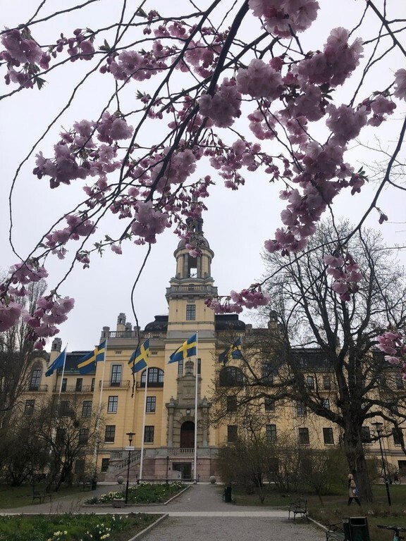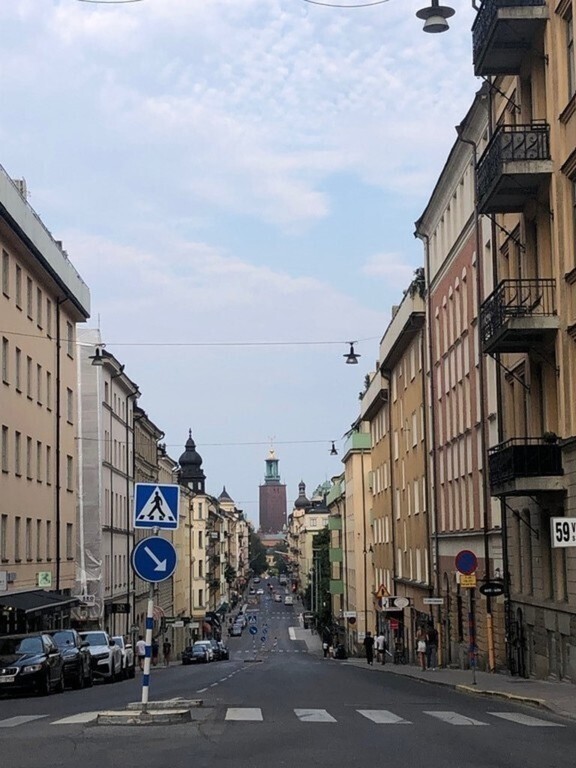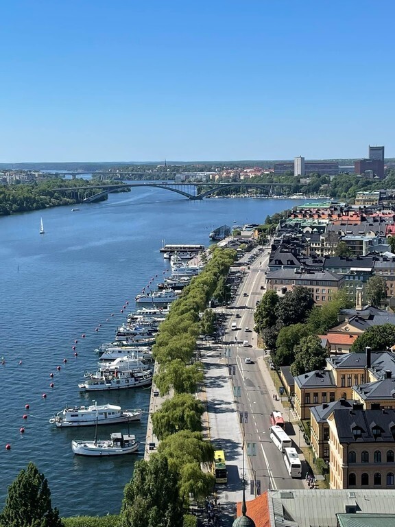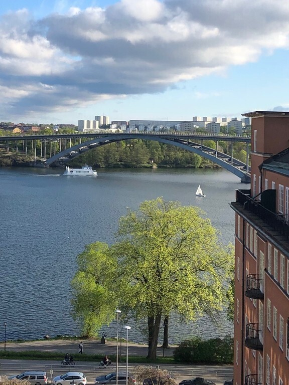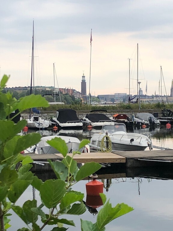 At Kungsholmen, Stockholm just by Norr Mälarstrand. Close to restaurants, shopping, parks just outside the door, bath and boats, lots of nice walking, culture, art and museums.