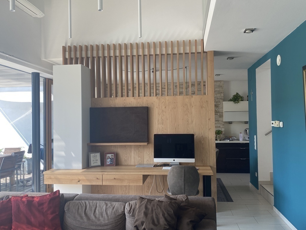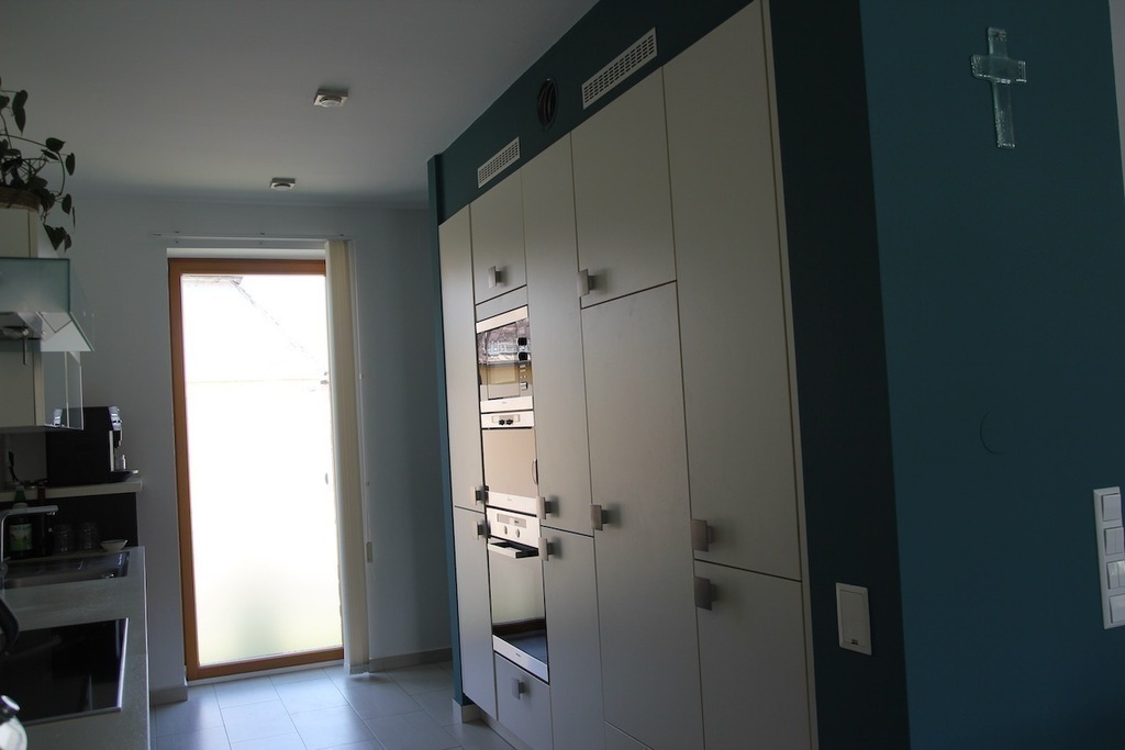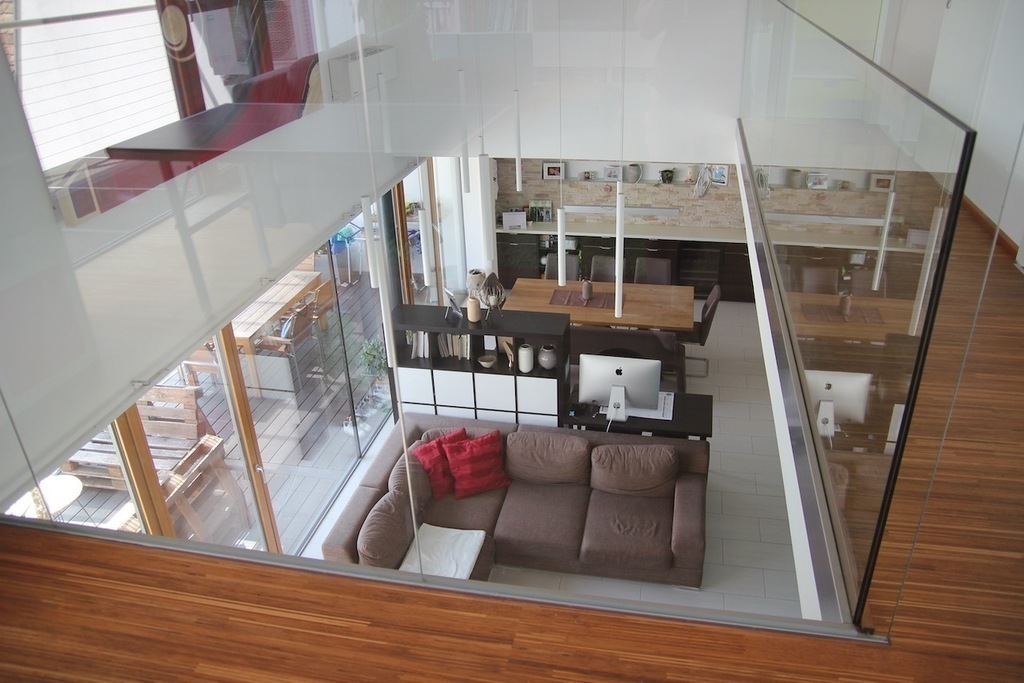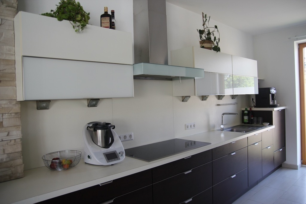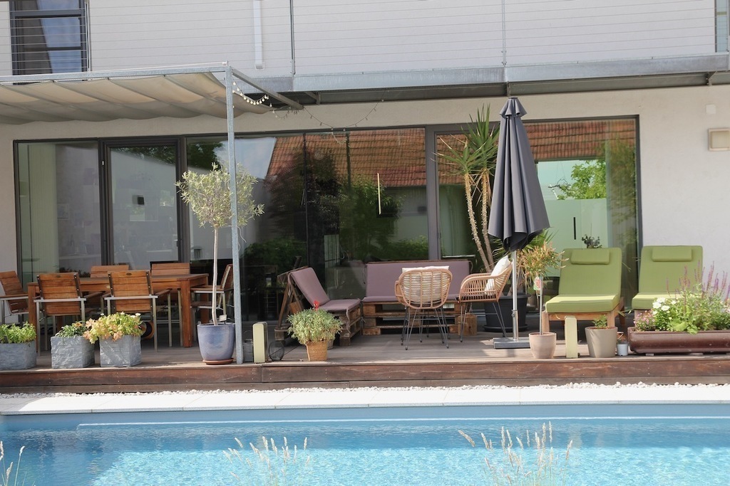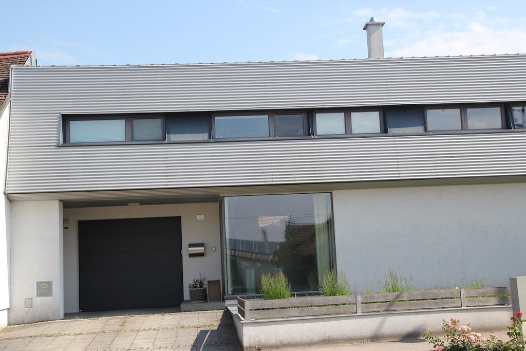 Unser Haus ist sehr modern, hell, lichtdurchflutet, mit vielen Glasscheiben und den Blick in unseren Garten.