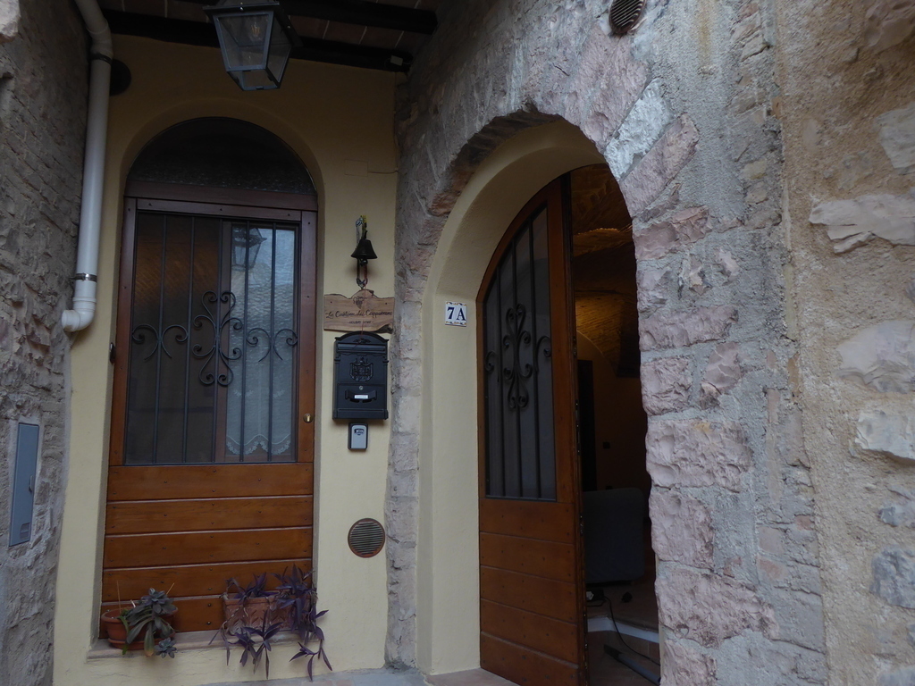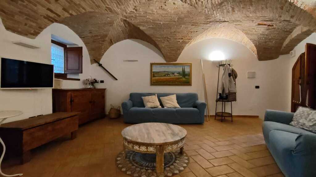L’appartamento è comodo e confortevole, con soffitto con le volte a botte e mattoni a faccia a vista. In un angolo è addirittura visibile la roccia delle fondamenta di Spello. Utilizzato in antichità come magazzino del vicino convento dei Cappuccini, poi trasformato in cantina ed infine adattato ad abitazione. Uno dei due bagni anticamente era un pozzo ed ha una caratteristica conformazione tronco conica rovesciata. A disposizione c’è anche un focolare circolare sospeso.