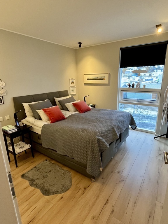 The apartment is in a brand new building in Kópavogur, which is part of the Greater Reykjavík Area. It is situated by the sea, very close to the amazing Sky Lagoon and only 6.5 kilometers from downtown Reykjavík. It is on the second floor, in a building with an elevator and a parking garage below. There are two bedrooms, the master bedroom has a king sized double bed and the smaller bedroom has a comfortable sofa bed. The kitchen is fully furnished, with all basic accessories & utensils. The balcony, which has an electrical heater, can be closed off if it's windy and easily opened during sunny days.