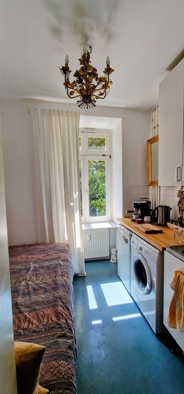 Friedrichshain is an exciting, young district in the centre of Berlin. Our flat is located in a quiet street in the courtyard, which is more like a garden and is tended by three generations of residents. A large room, a small bathroom (shower only) and a small kitchen provide comfortable accommodation for 1-2 people.