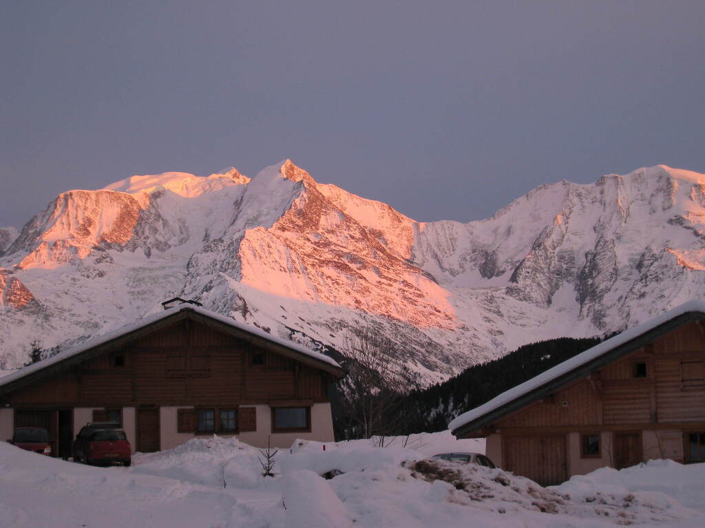 Très calme, vue face au Mont Blanc à couper le souffle, piste ski de fond à coté,Télécabine du Bettex et téléski des Communailles à 10 minutes à pied, la montée par une voie privée de 800 mètres est plus facile avec un véhicule 4X4 ou se garer en bas de la voie privée