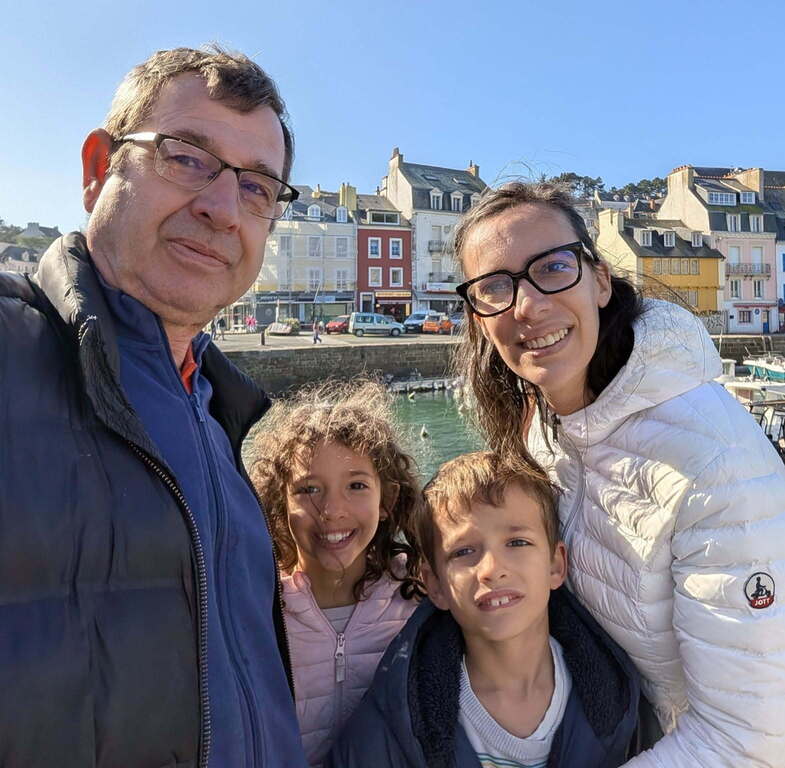 Famille de quatre : Mélissa la maman, Stéphane le papa, Eloi 9 ans et Roxane 8 ans.