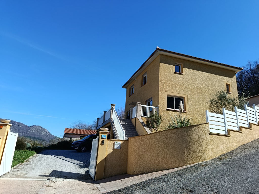 Notre maison est très spacieuse avec une vue sur la montagne à 180° : deux terrasses une au sud et une autre au nord.