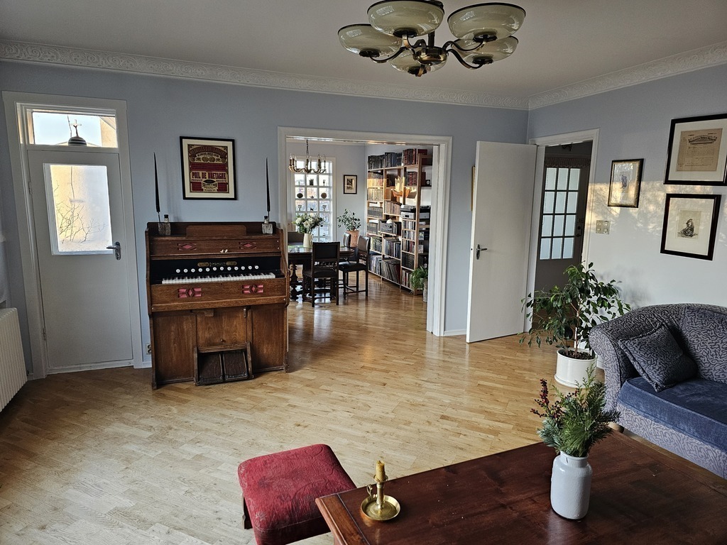Our flat is on the second floor in 4 apartment house. The house is not fare from the city center in a very quiet area next to an open space and a church.